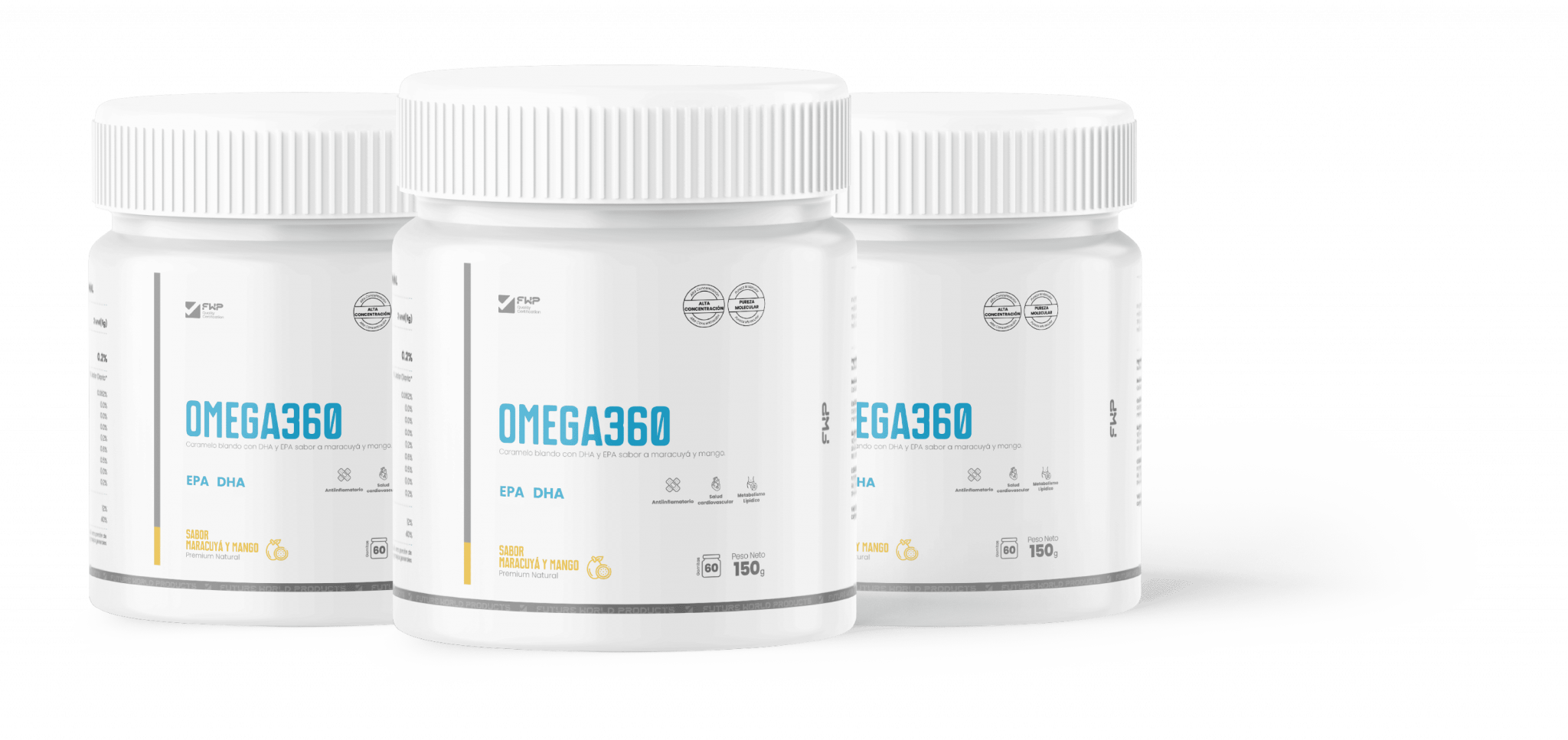 Suplemento Premium de Omega 3, 6 y 9 con sabor natural a Maracuyá y Mango